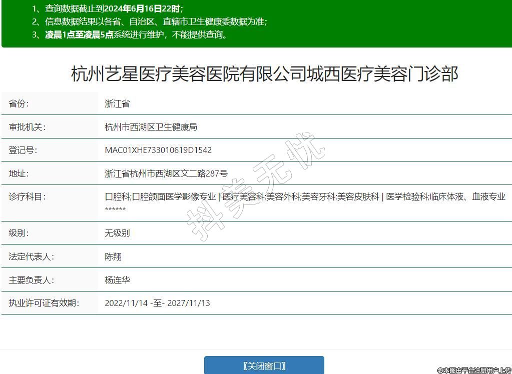 杭州藝星醫(yī)療美容醫(yī)院有限公司城西醫(yī)療美容門診部