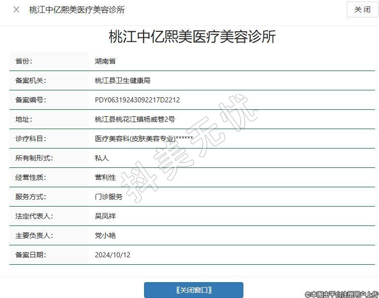 桃江中億熙美醫(yī)療美容診所成立于2024年,位于桃花江鎮(zhèn)楊威巷2號,聚焦膚質年輕化管理、五官精雕及輕醫(yī)美抗衰領域。