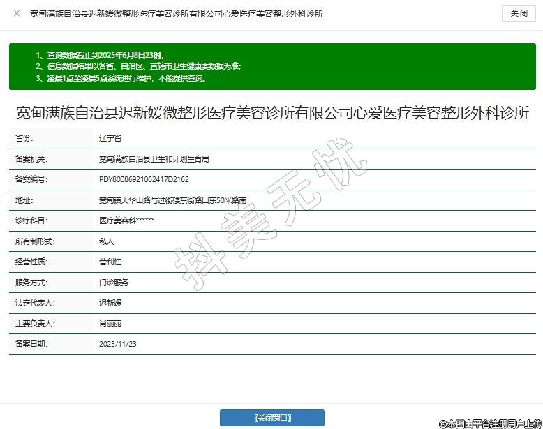 寬甸滿族自治縣遲新媛微整形醫(yī)療美容診所有限公司心愛(ài)醫(yī)療美容整形外科診所