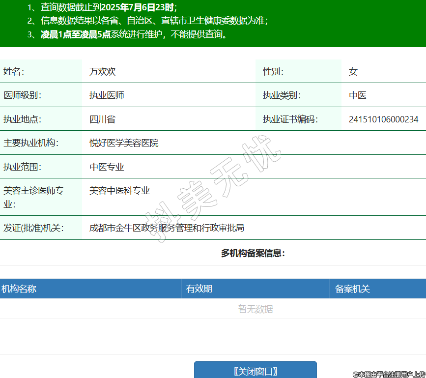 姓名:萬(wàn)歡歡性別:女醫(yī)師級(jí)別:執(zhí)業(yè)醫(yī)師執(zhí)業(yè)類別:中醫(yī)執(zhí)業(yè)地點(diǎn):四川省執(zhí)業(yè)證書(shū)編碼:241510106000234主要執(zhí)業(yè)機(jī)構(gòu):悅好醫(yī)學(xué)美容醫(yī)院執(zhí)業(yè)范圍:中醫(yī)專業(yè)美容主診醫(yī)師專業(yè):美容中醫(yī)科專業(yè)發(fā)證(批準(zhǔn))機(jī)關(guān):成都市金牛區(qū)政務(wù)服務(wù)管理和行政審批局 -