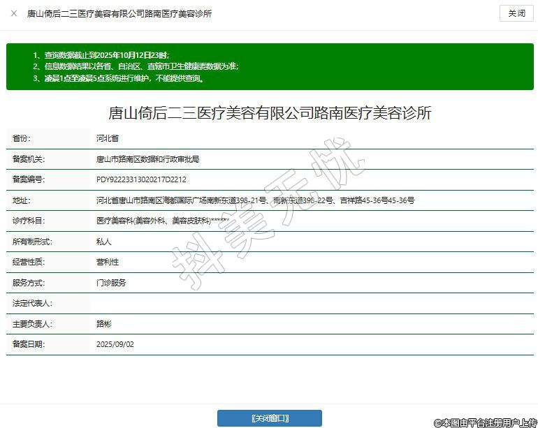 唐山倚后二三醫(yī)療美容有限公司路南醫(yī)療美容診所