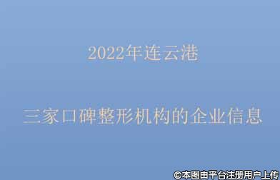 現(xiàn)在全國的整形機構(gòu)很多,連云港也不少,但,可能大家對連云港的認(rèn)識還是在,這是一座靠海的城市。殊不知這座美麗的城市,醫(yī)美行業(yè)也在不斷發(fā)展著,看看這連云港三家口碑整形機構(gòu)的企業(yè)信息就知道了。