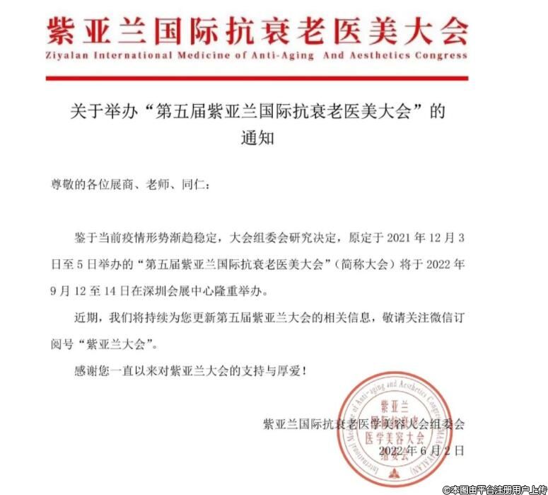 關(guān)于舉辦“第五屆紫亞蘭國(guó)際抗衰老醫(yī)美大會(huì)”的通知
