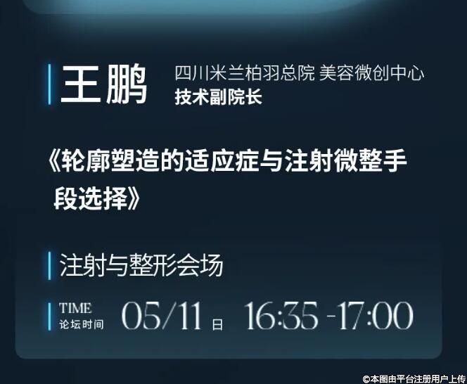回顧以往美沃斯大會,參會人數(shù)屢創(chuàng)新高,而本次大會自定檔發(fā)布以來便備受行業(yè)關(guān)注,大會共分11個主會場,將從外科、皮膚、注射、抗衰、運營、醫(yī)美標(biāo)準(zhǔn)化等多個主題分會場進(jìn)行內(nèi)容切入,全方位研究探討。四川米蘭柏羽總院美容微創(chuàng)中心技術(shù)副院長王鵬受邀于5月11日舉行的注射與整形會場上分享主題——《輪廓塑造的適應(yīng)癥與注射微整手段選擇》,將從微整審美、前沿技術(shù)等多層面解析輪廓美學(xué)的創(chuàng)新塑美趨勢,展示求美者通過微整手段實現(xiàn)的顯著變化。