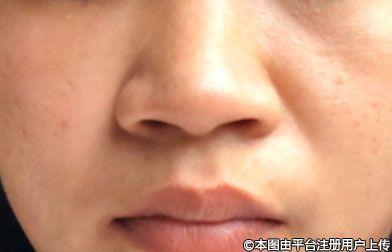 1、鼻翼外擴、鼻翼組織中度肥厚,但是鼻孔大小和鼻檻基本正常: