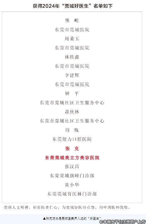 作為莞城醫(yī)美界入選榮膺“莞城好醫(yī)生”稱號的張克院長,其人其事塑造了東莞醫(yī)療美容界的好榜樣。張克表示,“榮耀只屬于過去,前行才能擁有未來”,他帶領整形外科的團隊,以“顧客至上”為中心,不斷提高技藝水平,汲取國內外優(yōu)秀的成功案例,學習國內外前沿整外技術,不斷攀登整形領域的至高點,為提高東莞整形外科水平貢獻微薄之力。”