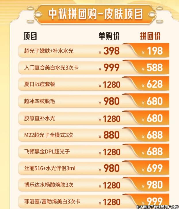 你還在為高昂的醫(yī)美費(fèi)用望而卻步嗎?現(xiàn)在,有了儷人中秋拼團(tuán)購,美麗變得觸手可及!
