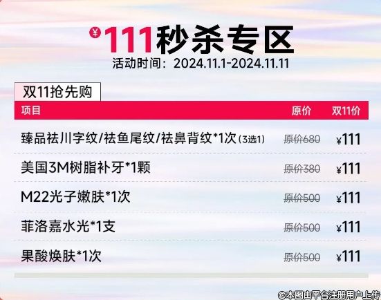 在這個(gè)刷臉時(shí)代,美就是一種超能力。雙11,就是咱們的美容購物節(jié),變美不剁手。小編帶你深挖雙11的醫(yī)美寶藏,讓你美得不費(fèi)吹灰之力
