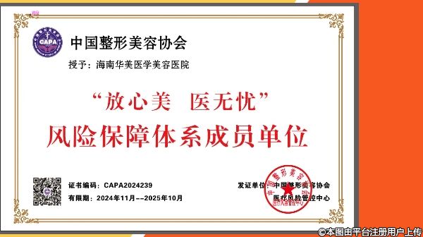 2024年11月,海南華美醫(yī)學美容醫(yī)院被中國整形美容協(xié)會授予的“放心美醫(yī)無憂”風險保障體系成員單位,同時是海南首家得到的殊榮!海南華美在品質醫(yī)美領域邁出了堅實的一步!