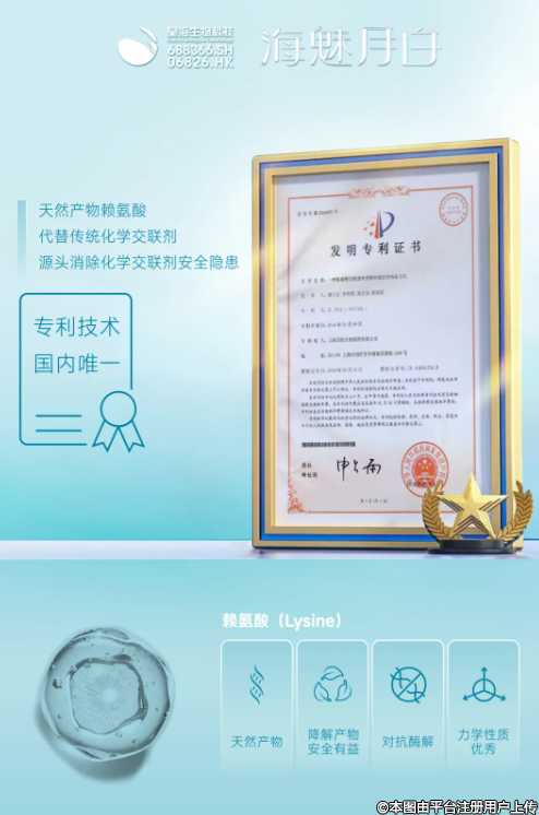 昊海生科自主研發(fā),全球首創(chuàng)有機交聯(lián)工藝,海魅月白玻尿酸創(chuàng)新使用天然產(chǎn)物賴氨酸(人體必需氨基酸)為交聯(lián)劑,相較于傳統(tǒng)化學(xué)交聯(lián)劑安全性高。該玻尿酸為國內(nèi)首個封閉透明質(zhì)酸酶作用位點產(chǎn)品,具有更為長效的特質(zhì)。