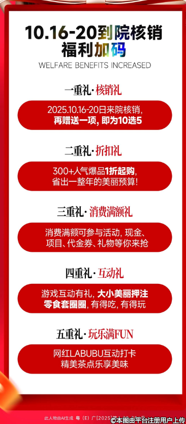 10月16-20日來院核銷門票,項目再加送1項,從10選4升級為10選5!(折合下來,平均不到60塊錢薅1個爆款項目,做夢都會笑醒~)